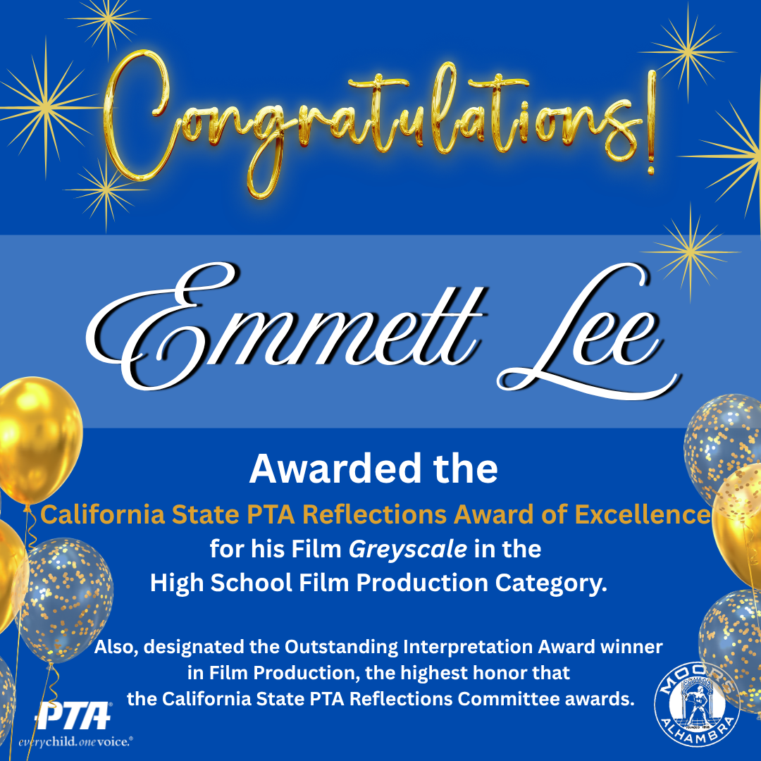 CONGRATS TO SENIOR EMMETT LEE - PTA REFLECTIONS STATE CHAMP!